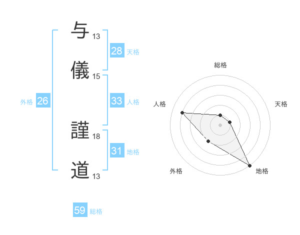 与儀 謹道さんを姓名の画数から五運を鑑定