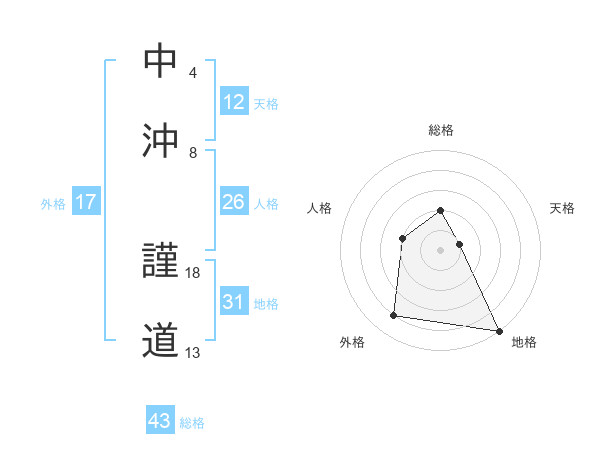 中沖 謹道さんを姓名の画数から五運を鑑定