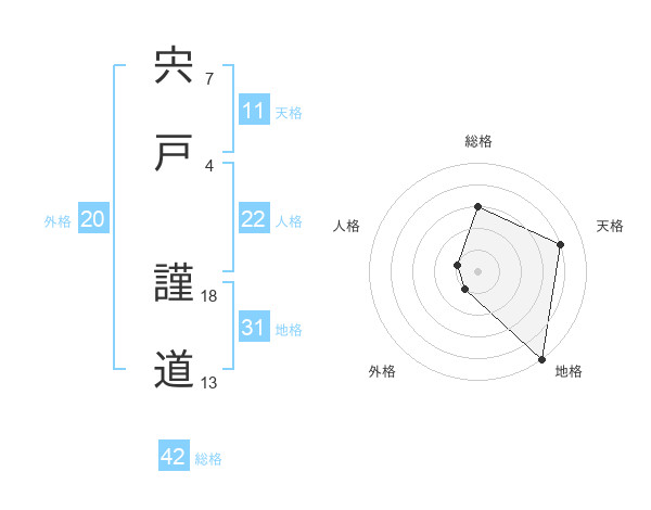宍戸 謹道さんを姓名の画数から五運を鑑定