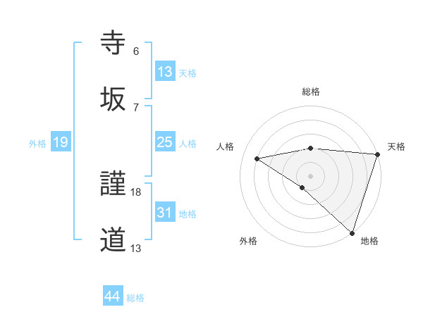 寺坂 謹道さんの総格は44画の2点!