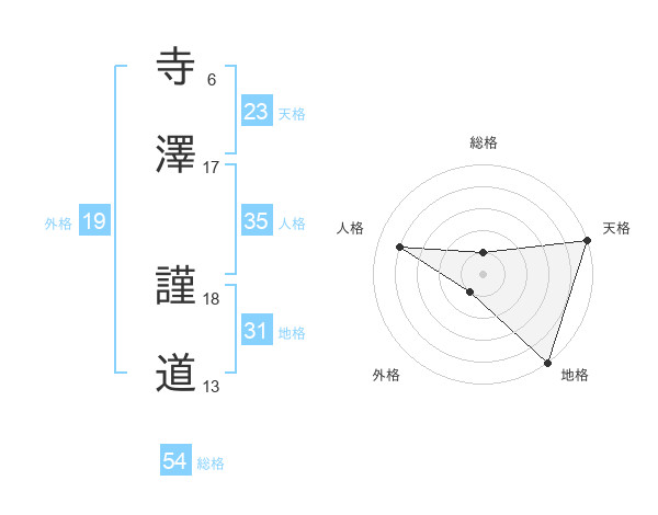 寺澤 謹道さんの天格は23画の5点!