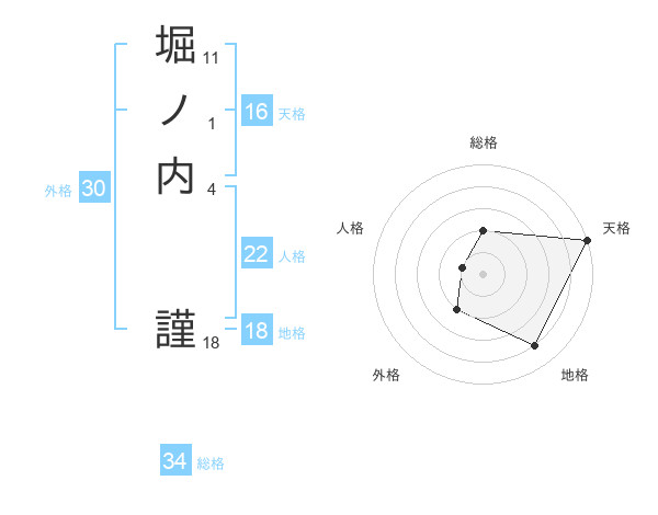 堀ノ内 謹さんの地格は18画の4点!