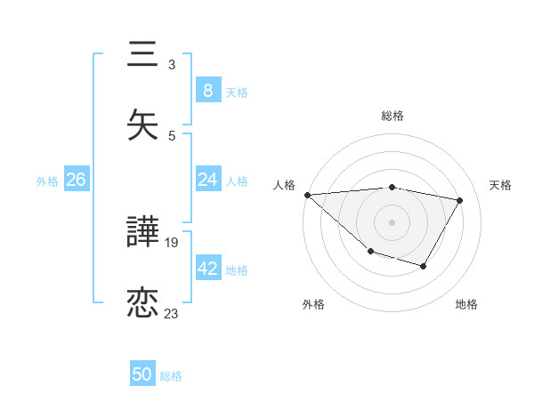 三矢 譁恋さんを姓名の画数から五運を鑑定