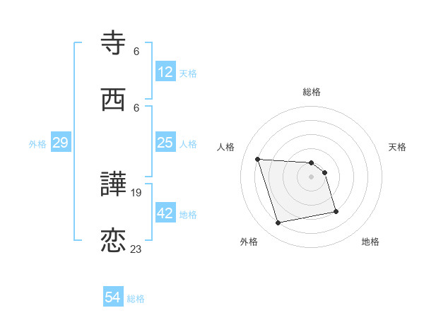 寺西 譁恋さんの人格は25画の4点!