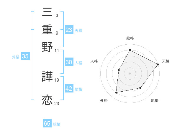 三重野 譁恋さんを姓名の画数から五運を鑑定
