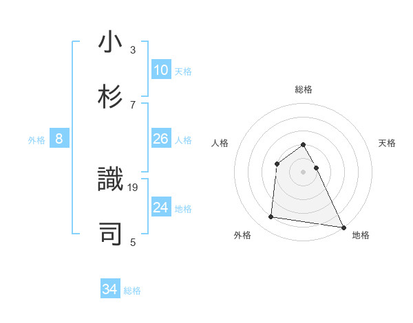 小杉 識司さんの総格は34画の2点!