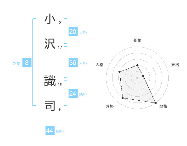 小沢 識司さんの総格は44画の2点!