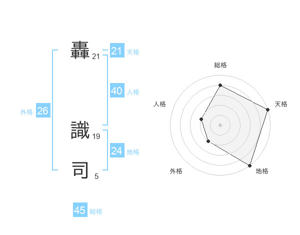 轟 識司さんの天格は21画の5点!