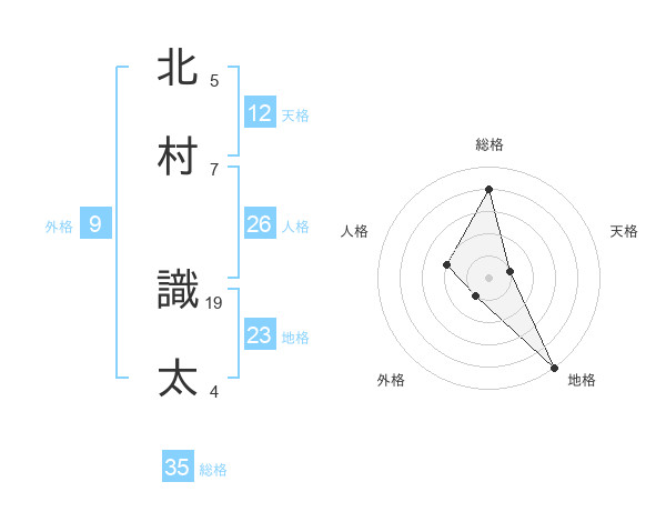 北村 識太さんの総格は35画の4点!