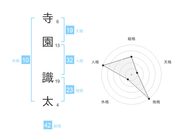 寺園 識太さんを姓名の画数から五運を鑑定