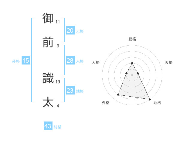 家系が持つ宿命的な運勢を表します。祖先から受け継いだ苗字ですので自分の力が及びません。家柄を象徴します。