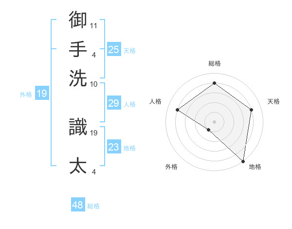 御手洗 識太さんの総格は48画の4点!