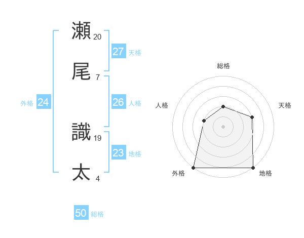 瀬尾 識太さんを姓名の画数から五運を鑑定