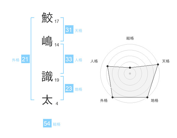 鮫嶋 識太さんの総格は54画の1点!