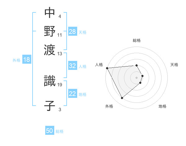 中野渡 識子さんを姓名の画数から五運を鑑定