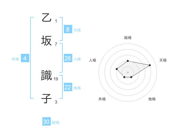 乙坂 識子さんを姓名の画数から五運を鑑定