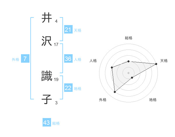 井沢 識子さんの天格は21画の5点!