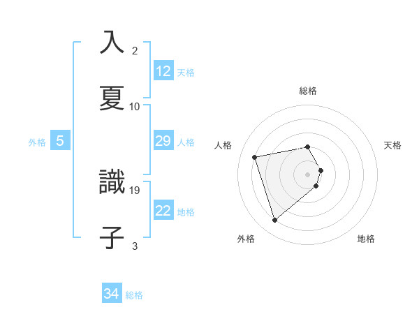 入夏 識子さんの天格は12画の1点!