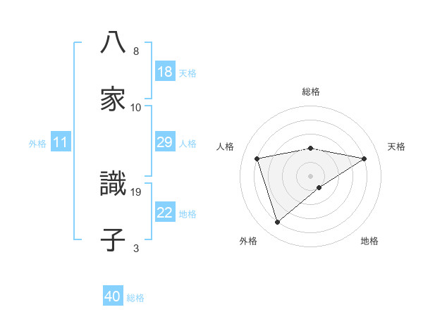 八家 識子さんの天格は18画の4点!