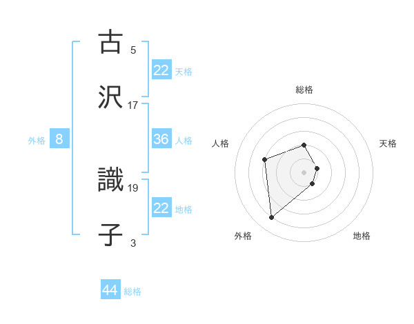 古沢 識子さんの天格は22画の1点!
