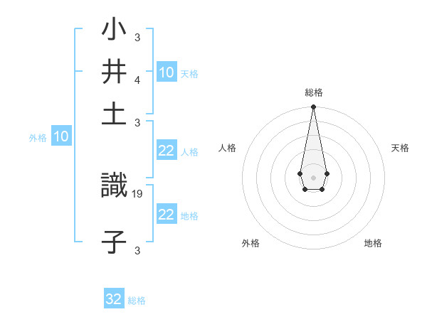 小井土 識子さんの地格は22画の1点!