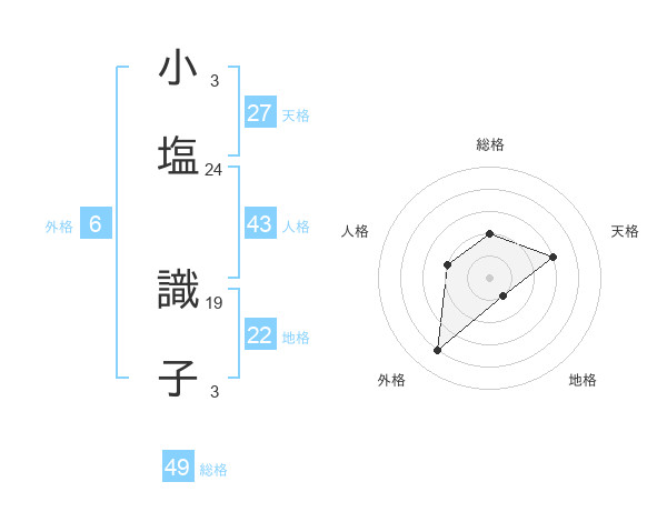 小塩 識子さんの総格は49画の2点!