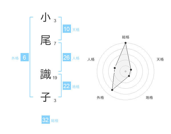 小尾 識子さんの総格は32画の5点!