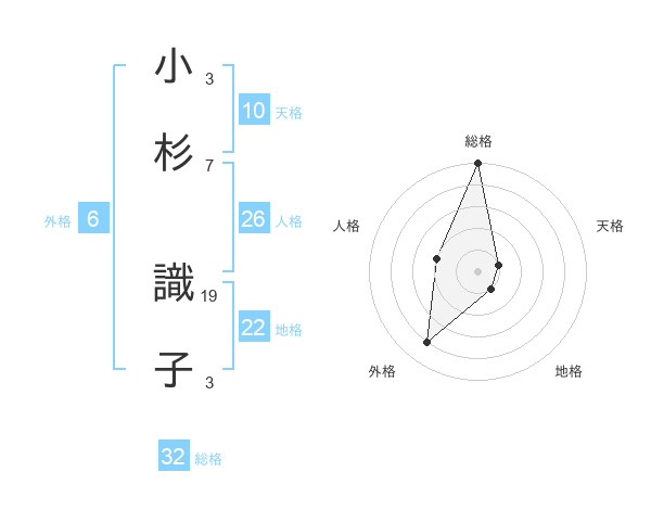 小杉 識子さんの総格は32画の5点!