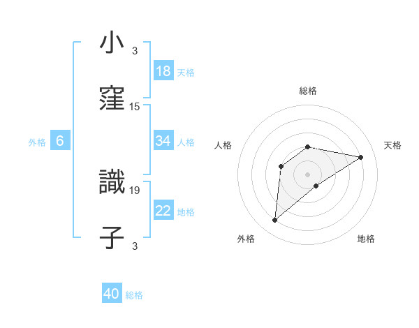 小窪 識子さんの天格は18画の4点!