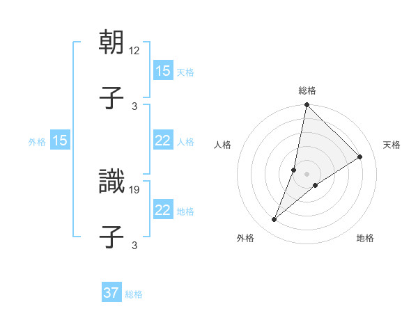 朝子 識子さんの総格は37画の5点!