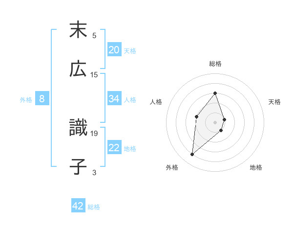 末広 識子さんの天格は20画の1点!