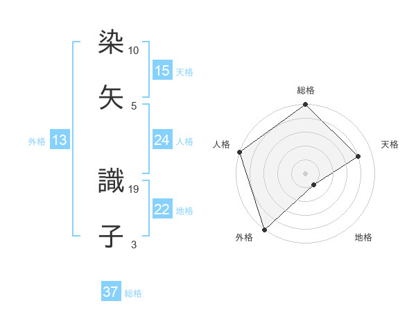 染矢 識子さんの総格は37画の5点!