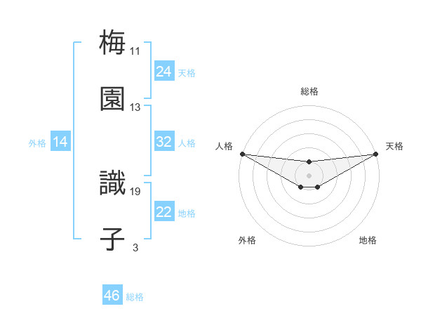 梅園 識子さんの外格は14画の1点!