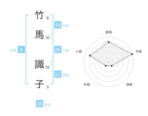 竹馬 識子さんの総格は38画の4点!