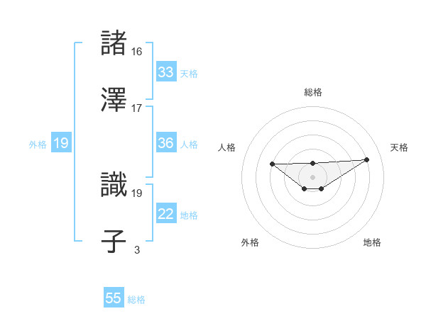 諸澤 識子さんを姓名の画数から五運を鑑定