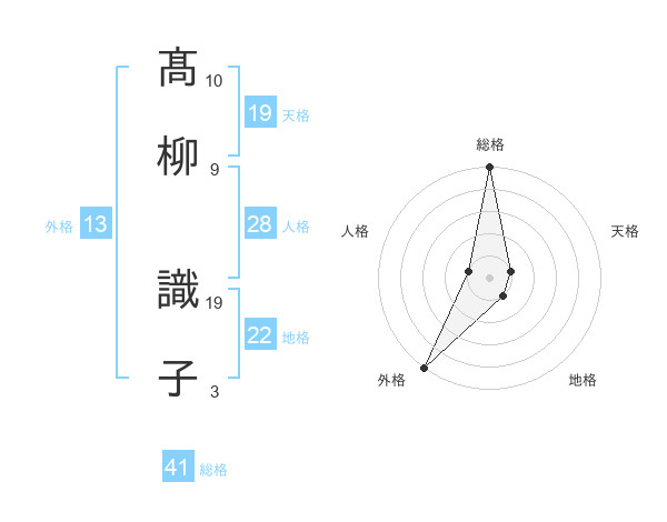 髙柳 識子さんの天格は19画の1点!