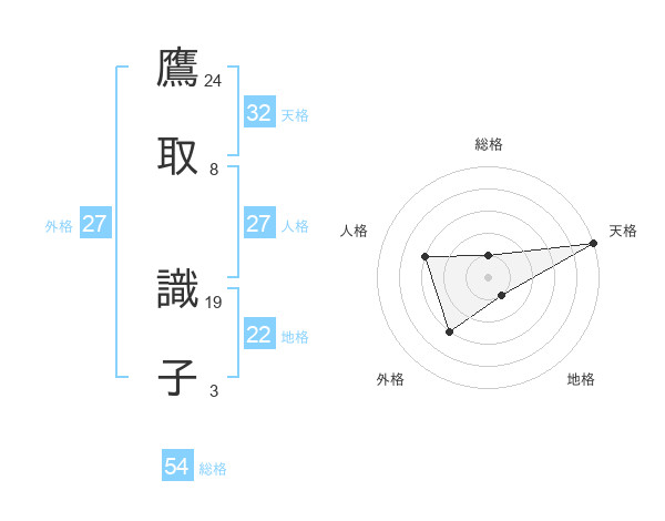 鷹取 識子さんを姓名の画数から五運を鑑定