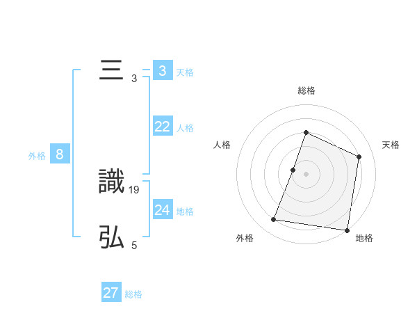 三 識弘さんの総格は27画の3点!