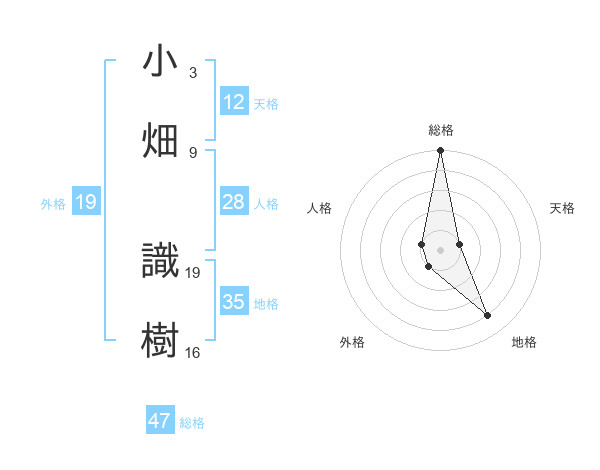 小畑 識樹さんを姓名の画数から五運を鑑定