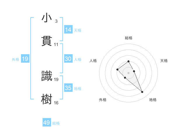 小貫 識樹さんを姓名の画数から五運を鑑定