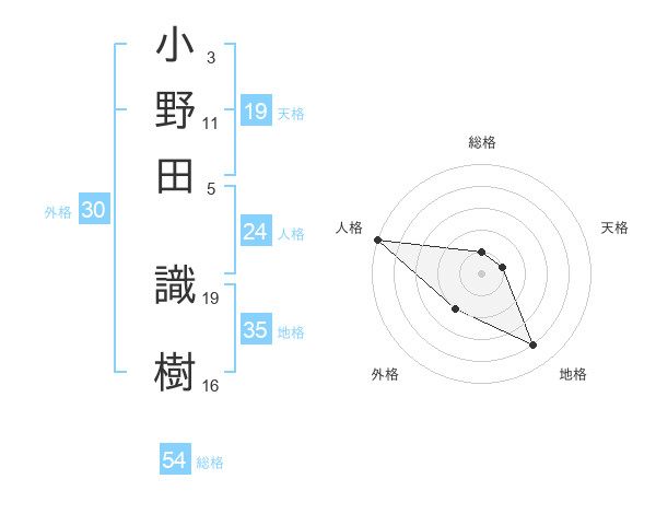 小野田 識樹さんの総格は54画の1点!