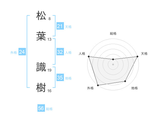 松葉 識樹さんの天格は21画の5点!
