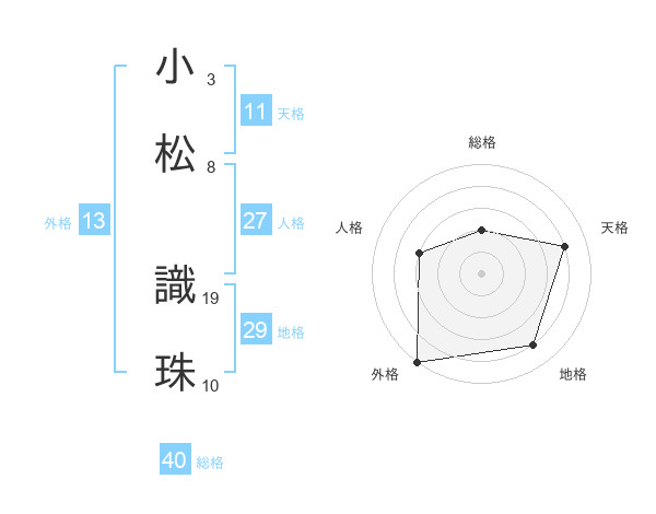 小松 識珠さんの外格は13画の5点!