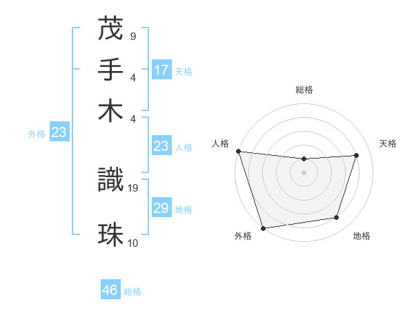 茂手木 識珠さんを姓名の画数から五運を鑑定