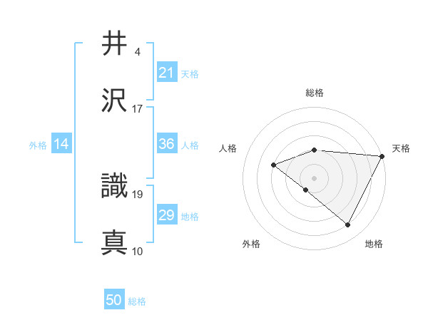井沢 識真さんの総格は50画の2点!