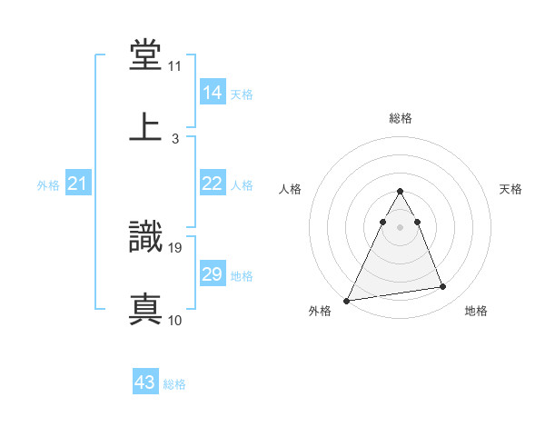 堂上 識真さんの外格は21画の5点!