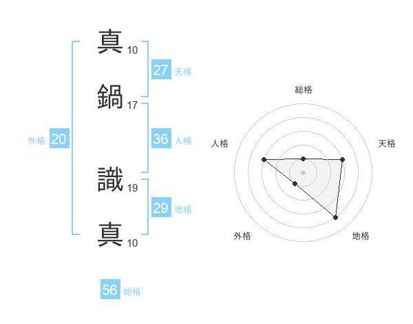 真鍋 識真さんを姓名の画数から五運を鑑定