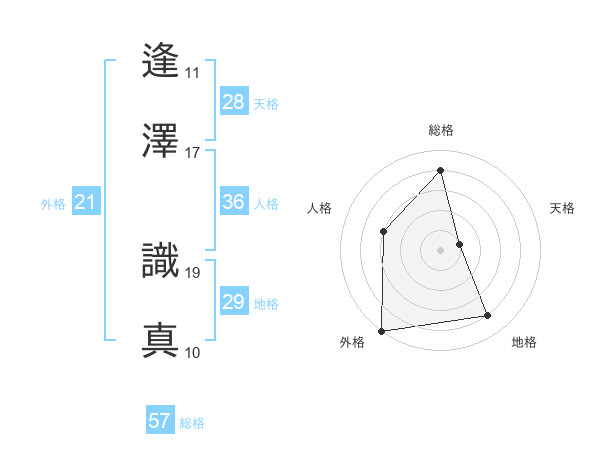 逢澤 識真さんの外格は21画の5点!