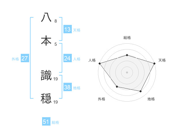八本 識穏さんの天格は13画の5点!