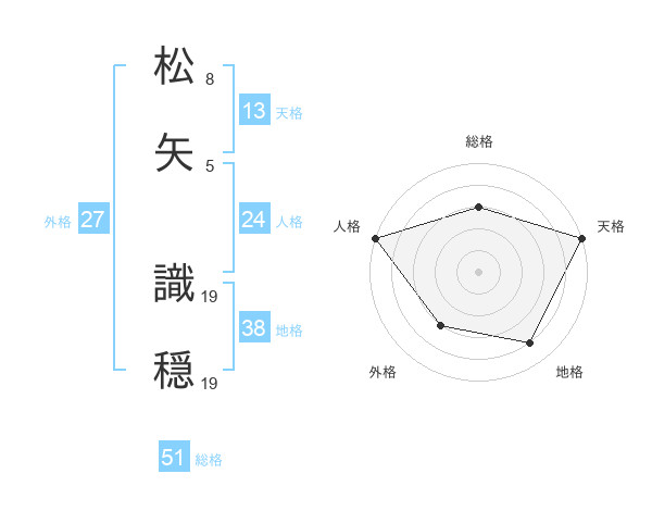 松矢 識穏さんの総格は51画の3点!